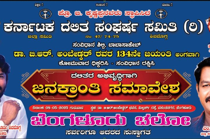 ಪ್ರಪೋಸರ್ ಬಿ ಕೃಷ್ಣಪ್ಪನವರು ಸ್ಥಾಪಿಸಿದ ಕರ್ನಾಟಕ ದಲಿತ ಸಂಘರ್ಷ ಸಮಿತಿ(ರಿ) ಸಂಘಟನೆ ವತಿಯಿಂದ ಸಂವಿಧಾನ ಶಿಲ್ಪಿ ಡಾಕ್ಟರ್ ಬಿಆರ್...