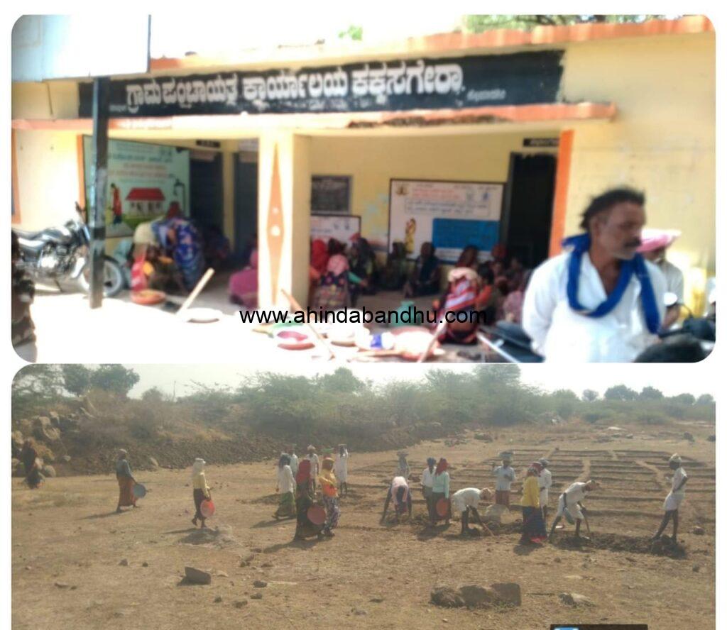ಶಹಪುರ: ತಾಲೂಕಿನ ಕಕ್ಕಸಗೇರಾ ಗ್ರಾಮ ಪಂಚಾಯಿತಿಯಲ್ಲಿ ಕೆಲವು ದಿನಗಳ ಹಿಂದೆ ಅಲ್ಲಿನ ನರೇಗಾ ಕೂಲಿ ಕಾರ್ಮಿಕರ ಸೇರಿಕೊಂಡು 6,9,8 ಪಾರಂ ಭರ್ತಿ ಮಾಡಿ, ಕಾನೂನಿನ ಚೌಕಟ್ಟಲ್ಲಿ ಪಂಚಾಯತ್ ಅಭಿವೃದ್ಧಿ ಅಧಿಕಾರಿಗಳ ಮೇಲೆ ಒತ್ತಡ ಹಾಕುವುದರ ಮುಖಾಂತರ ಕೆಲಸಕ್ಕೆಟ್ಟಿಸಿಕೊಂಡಿದ್ದರು. ಆದರೆ ಈಗ ಪಂಚಾಯತ್ ಅಧಿಕಾರಿಗಳು ಮತ್ತು ಕೆಲವು ಗ್ರಾಮ ಪಂಚಾಯತ್ ಸದಸ್ಯರು ಸೇರಿಕೊಂಡು ದಿನಗೂಲಿ ಕಾರ್ಮಿಕರ ಕೆಲಸದ ಜಿಪಿಎಸ್ ಛಾಯಾಚಿತ್ರಗಳನ್ನು ಅಪ್ಲೋಡ್ ಮಾಡುತ್ತಿಲ್ಲ. ಹಾಗೆ ಜಿಪಿಎಸ್ ಮಾಡುವ ಸ್ಥಳೀಯ ಗ್ರಾಮ ಪಂಚಾಯತ್ ಸದಸ್ಯರ ಕೈಗೆ ಫೋನು ನೀಡಿ ಜಿಪಿಎಸ್ ಮಾಡು ಎಂದು ಹೇಳುವ ಮುಖಾಂತರ, ದಿನನಿತ್ಯ ದುಡಿತ್ತಿರುವ ನರೇಗಾ ಕೂಲಿ ಕಾರ್ಮಿಕರಿಗೆ ಇವರೆಲ್ಲ ಮಾಡುತ್ತಿರುವ ಕಾರ್ಯಗಳಿಂದ ಅವರಿಗೆ ವೇತನ ಪಾವತಿಯಾಗುತ್ತಿಲ್ಲ ಎಂದು ಇಂದು ಗ್ರಾಮ ಪಂಚಾಯತಿಯ ಮುಂದೆ ಕಾರ್ಮಿಕರು ಧರಣಿಯನ್ನು ಹಮ್ಮಿಕೊಳ್ಳಲಾಗಿದೆ.