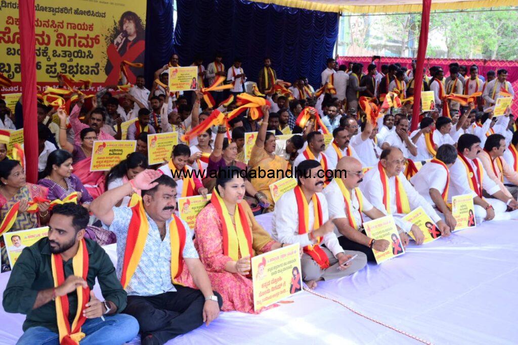 ಕನ್ನಡಾಭಿಮಾನವನ್ನು ಕಾಶ್ಮೀರದ ಪಹಲ್ಗಾಮ್ ದಾಳಿಗೆ ಹೋಲಿಸಿರುವ ಗಾಯಕ ಸೋನು ನಿಗಮ್ ಅವರ ಅಪಮಾನಕರ ಟೀಕೆಯನ್ನು ಖಂಡಿಸಿ ಹಾಗೂ ಅವರನ್ನು ಶೀಘ್ರ ಬಂಧಿಸುವಂತೆ ಆಗ್ರಹಿಸಿ ಕರ್ನಾಟಕ ರಕ್ಷಣಾ ವೇದಿಕೆಯ ಟಿ.ಎ. ನಾರಾಯಣ ಗೌಡ ಬಣದ ನೇತೃತ್ವದಲ್ಲಿ ಸೋಮವಾರ ಪ್ರತಿಭಟನೆ ನಡೆಯಿತು. ನಗರದ ಫ್ರೀಡಂ ಪಾರ್ಕಿನ ಆವರಣದಲ್ಲಿ ಕರವೇ ಮುಖಂಡರು ಹಾಗೂ ಕಾರ್ಯಕರ್ತರು ಕನ್ನಡ ಶಾಲು ಹಿಡಿದು ಫಲಕಗಳನ್ನು ಪ್ರದರ್ಶಿಸಿ ಸೋನು ನಿಗಮ್ ವಿರುದ್ಧ ಘೋಷಣೆ ಕೂಗಿ , ಭಾಷೆ ಭಾವನಾತ್ಮಕ ವಿಚಾರವಾಗಿದ್ದು , ಕನ್ನಡಾಭಿಮಾನವನ್ನು ಕೆಣಕಿದ್ದಾರೆ. ಅವರನ್ನು ಕೂಡಲೇ ಅವರನ್ನು ಬಂಧಿಸುವಂತೆ ಆಗ್ರಹಿಸಿದರು.