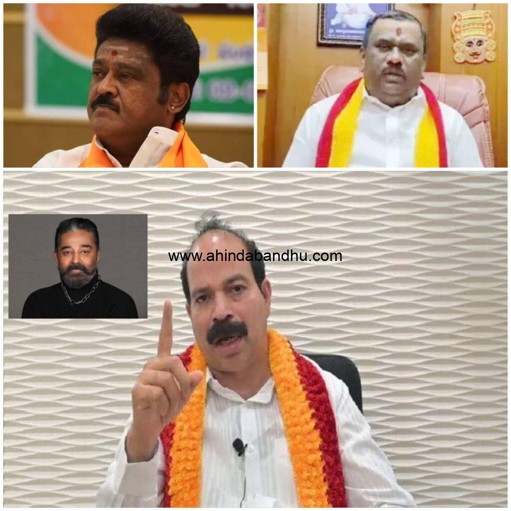 ಕರವೇ ಅಧ್ಯಕ್ಷ ನಾರಾಯಣಗೌಡ ಖಂಡನೆ’ನಟ, ರಾಜಕಾರಣಿ ಕಮಲ್ ಹಾಸನ್ ನೀಡಿರುವ ಹೇಳಿಕೆ ಸಂಪೂರ್ಣ ಸುಳ್ಳು. ದುರುದ್ದೇಶಪೂರಿತ ಮತ್ತು ಕನ್ನಡಿಗರ ಭಾವನೆಗಳಿಗೆ ಧಕ್ಕೆ ತರುವಂತಹದ್ದಾಗಿದೆ. ಈ ಹೇಳಿಕೆ ಕಮಲ್ ಹಾಸನ್ ಅವರ ಅಜ್ಞಾನವನ್ನು ಬಯಲುಗೊಳಿಸುತ್ತದೆ. ಕನ್ನಡ ಮತ್ತು ತಮಿಳು ಭಾಷೆಗಳು ದ್ರಾವಿಡ ಭಾಷಾ ಕುಟುಂಬಕ್ಕೆ ಸೇರಿದ್ದರೂ, ಇವು ತಮ್ಮದೇ ಆದ ಸ್ವತಂತ್ರ ಇತಿಹಾಸ, ಸಾಹಿತ್ಯ, ಸಂಸ್ಕೃತಿಯನ್ನು ಹೊಂದಿವೆ’ ಎಂದಿದ್ದಾರೆ ಅವರು.