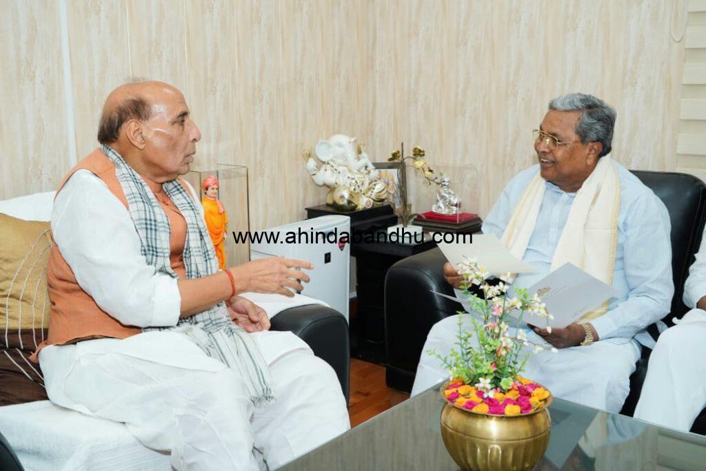 ಮುಖ್ಯಮಂತ್ರಿ ಸಿದ್ದರಾಮಯ್ಯ ಅವರು ದೆಹಲಿಯಲ್ಲಿ ಇಂದು ರಕ್ಷಣಾ ಸಚಿವ ರಾಜನಾಥಸಿಂಗ್ ಅವರನ್ನು ಭೇಟಿಯಾಗಿ ಮೈಸೂರು ದಸರಾ ಉತ್ಸವದಲ್ಲಿ ವೈಮಾನಿಕ ಪ್ರದರ್ಶನ ಆಯೋಜಿಸುವ ಕುರಿತು ಚರ್ಚೆ ನಡೆಸಿದರು. ಬೆಂಗಳೂರಿನಲ್ಲಿ ಡಿಫೆನ್ಸ್ ಕಾರಿಡಾರ್, ಅಭಿವೃದ್ಧಿ ಕಾಮಗಾರಿಗಳಿಗೆ ರಕ್ಷಣಾ ಇಲಾಖೆಯ ಜಾಗ ನೀಡುವ ಕುರಿತು ಸಮಾಲೋಚನೆ ನಡೆಸಿದರು.
