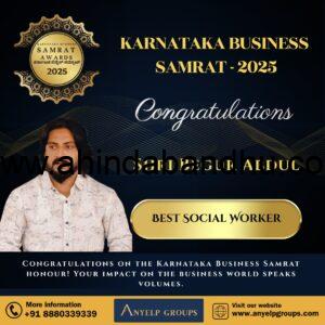 Uncategorized ಬಿಸಿನೆಸ್ ಸಾಮ್ರಾಟ್ ಅವಾರ್ಡ್ ಸೀಸನ್-2 2025 ahindabandhu April 29, 2025 1 min read 2025 ನೇ ಸಾಲಿನ ” ಅತ್ಯುತ್ತಮ ಸಮಾಜ ಸೇವಕ” ಪ್ರಶಸ್ತಿಯನ್ನು ಪಡೆದ ಶ್ರೀ ಬೇಗೂರು ಅಬ್ದುಲ್ ರವರು Post Views: 150 Facebook Twitter LinkedIn WhatsApp Messenger Email Continue Reading Previous ನೆಲ ಜಲ ಹೋರಾಟದ ಜೊತೆಗೆ ಸಂಸ್ಕೃತಿ, ಸಾಹಿತ್ಯ ಪ್ರತಿಭಾ ಪುರಸ್ಕಾರಗಳು ನೀಡುವ ಕರವೇ ಕಾರ್ಯ ಶ್ಲಾಘನೀಯ;ಶ್ರೀ.Next ಸ್ಯಾಟಲೈಟ್ ಸಿಟಿ ರಿಂಗ್ ರೋಡ್ ; ಭೂಮಿಗೆ ಭಾರೀ ಡಿಮ್ಯಾಂಡ್ Leave a Reply Cancel replyYour email address will not be published. Required fields are marked *Comment * Name * Email * Website Save my name, email, and website in this browser for the next time I comment. More Stories 1 min read Uncategorized ಮೈಸೂರಿನ ಕರ್ನಾಟಕ ರಾಜ್ಯ ಮುಕ್ತ ವಿಶ್ವವಿದ್ಯಾನಿಲಯದಲ್ಲಿ ಶ್ರೀ ಮಹರ್ಷಿ ವಾಲ್ಮೀಕಿ ಜಯಂತಿಯ ಕಾರ್ಯಕ್ರಮ …..* October 29, 2025 ahindabandhu 1 min read Uncategorized ಯಾದಗಿರಿ ಜಿಲ್ಲೆಯ ಸುರಪುರ ತಾಲೂಕಿನ ಕೆಂಭಾವಿ ಪುರಸಭೆ ವ್ಯಾಪ್ತಿಯಲ್ಲಿ ಬೀದಿ ನಾಯಿಗಳ ಕಾಟಕ್ಕೆ ಬೇಸತ್ತ ವಾಹನ ಸವಾರರು ಮತ್ತು ಸಾರ್ವಜನಿಕರು… October 27, 2025 ahindabandhu 1 min read Uncategorized October 27, 2025 ahindabandhu